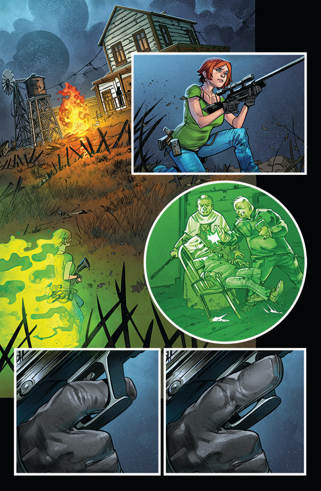 “About She-Spawn herself, I love her. I see her as one of the few supernatural badasses who drives a pick-up truck and has a family cabin in the woods. She goes up against a religious sect to save a child, making her a bad person fighting for something good, with stakes she couldn’t possibly imagine. Ig Guara did meticulous, gorgeous work, with typically beautiful classic Image coloring by Robert Nugent. It just looks stunning. It’s a story with no-seat belt and the engines on high––violent, a little kind, a little mean, about an exploration of the country and a character’s soul.”