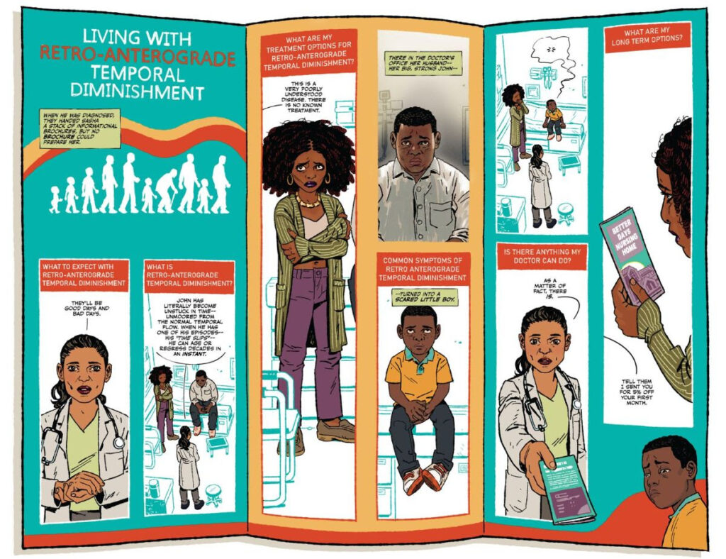 Assorted Crisis Events #6 drops readers directly into a mind bending new adventure. Are you or someone you love suffering from Retro Anterograde Temporal Diminishment? Do you find yourself vacillating between child and octogenarian from one moment to the next? Is it increasingly difficult to remember important details such as your name, your address, the date, the faces of cherished loved ones? If so, see a doctor and ask about your options!