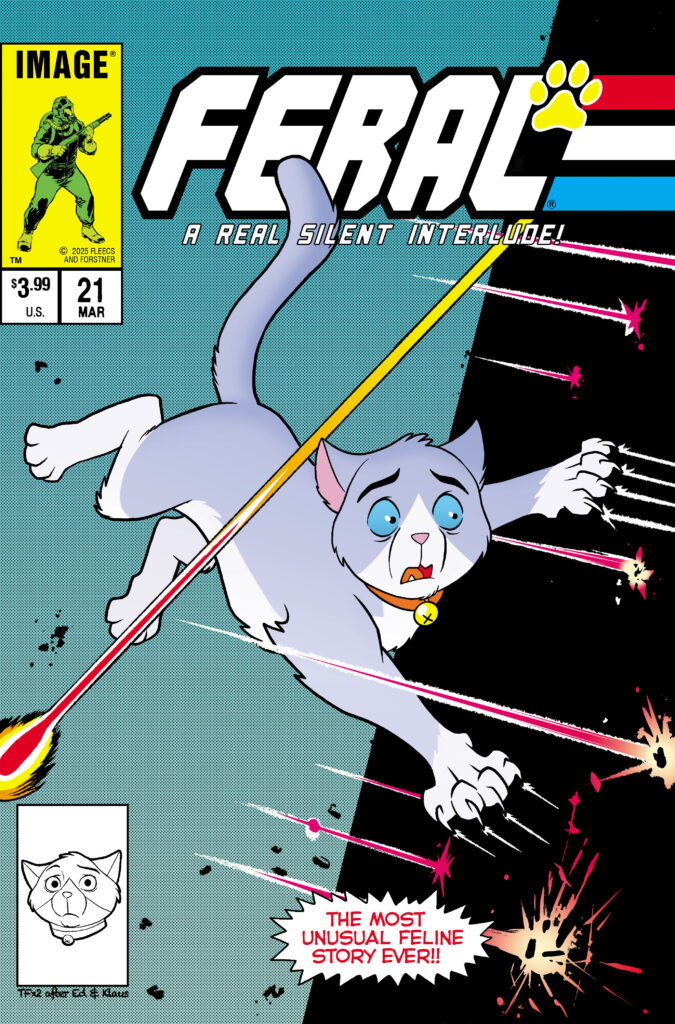 PORTLAND, Ore. 12/17/2025 — The bestselling, ongoing series Feral—by Stray Dogs masterminds Tony Fleecs and Trish Forstner—will kick off a new story arc with a purr-ticularly special, highly collectible silent interlude issue featuring surprise cameo appearances. Feral #21 will hit shelves in March from Image Comics.