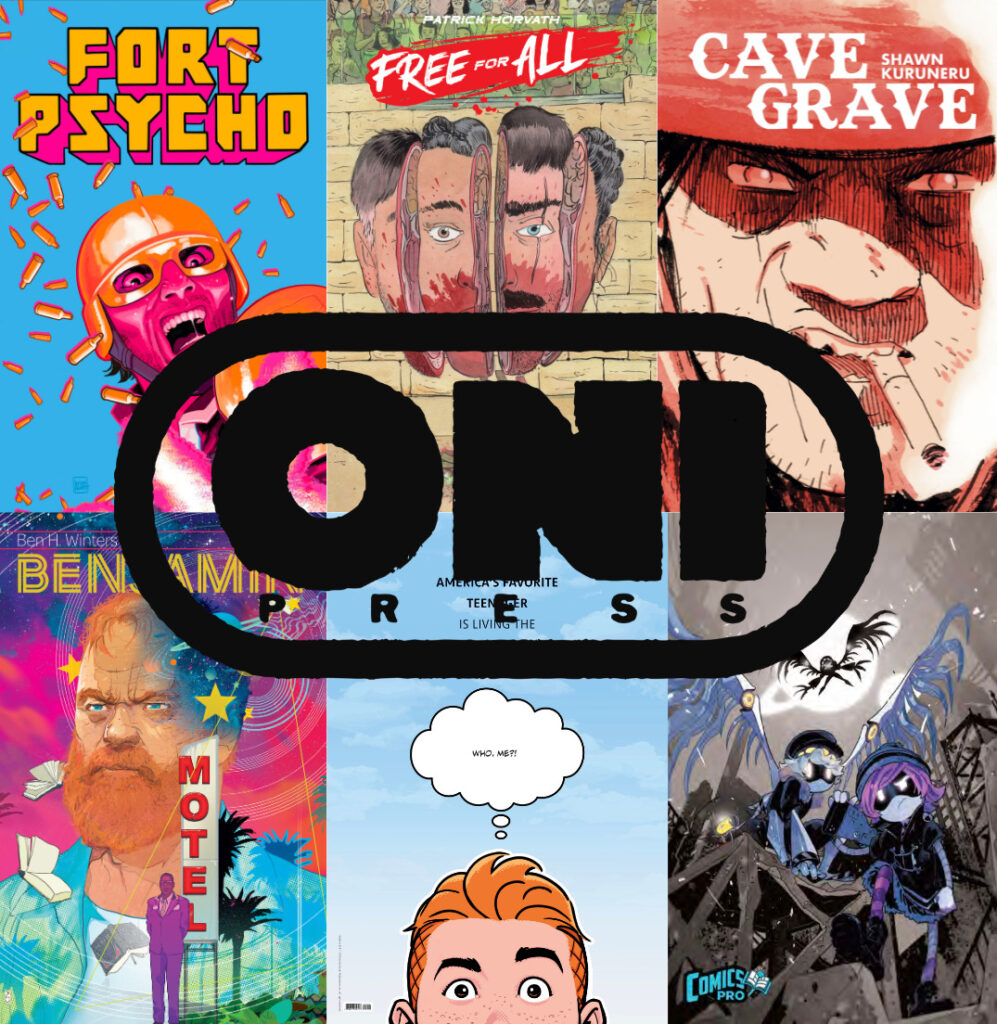 PORTLAND, OR (January 29, 2026) – In advance of the upcoming ComicsPRO Comic Book Industry Meeting in Glendale, CA from February 18th to February 21st, Oni Press – the multiple Eisner and Harvey Award-winning publisher of groundbreaking comics and graphic novels – is proud to reveal a slew of giveaways for participating ComicsPRO retailers from some of the most high-profile and hotly anticipated comics of 2026, including the upcoming launch of the ARCHIE publishing line; this summer’s paranoia-inducing introduction of New York Times best-selling creator Matt Kindt’s (BRZRKR) FLUX HOUSE imprint with MIND MGMT: NEW & IMPROVED and FORT PSYCHO; and the record-breaking MURDER DRONES series, adapting the global hit animation phenomenon from Glitch Productions. In addition, signed, advance copies of several of Oni’s most acclaimed, upcoming graphic novel collections will be available — including the psychedelic sci-fi adventure by BENJAMIN by Ben H. Winters (EC’s Cruel Universe, The Last Policeman Trilogy) and Leomacs (EC’s Epitaphs from the Abyss, DC Black Label’s Rogues); the bloody satire FREE FOR ALL by Harvey Award winner Patrick Horvath (Beneath the Trees Where Nobody Sees); and the beautifully bloody western CAVE GRAVE by cartoonist Shawn Kuruneru (The Goddamn Tragedy).