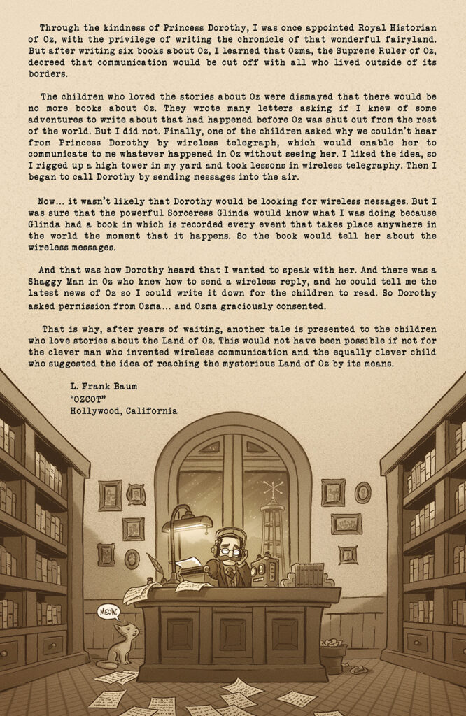“L. Frank Baum and his ‘wonder stories’ have been a huge influence on me and my work, and adapting an Oz book into a graphic novel has been a dream of mine since I first started making comics,” said Frampton. “The Patchwork Girl of Oz is one of Baum’s best stories and I hope that readers of all ages will enjoy seeing his amazing characters come to life in this new series.”