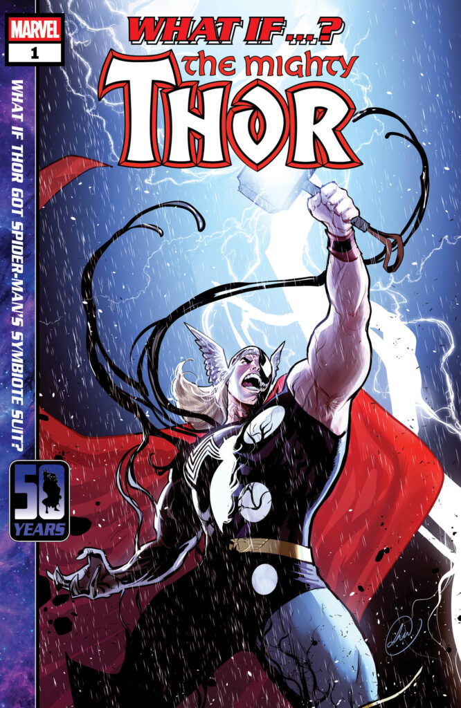 Amid the chaos, there comes a costume – but not to the hero you know! Legend has it that bonding with the symbiote suit made Thor mightier still. But what shadows lurking in the Ten Realms would take interest in such a powerful pairing?