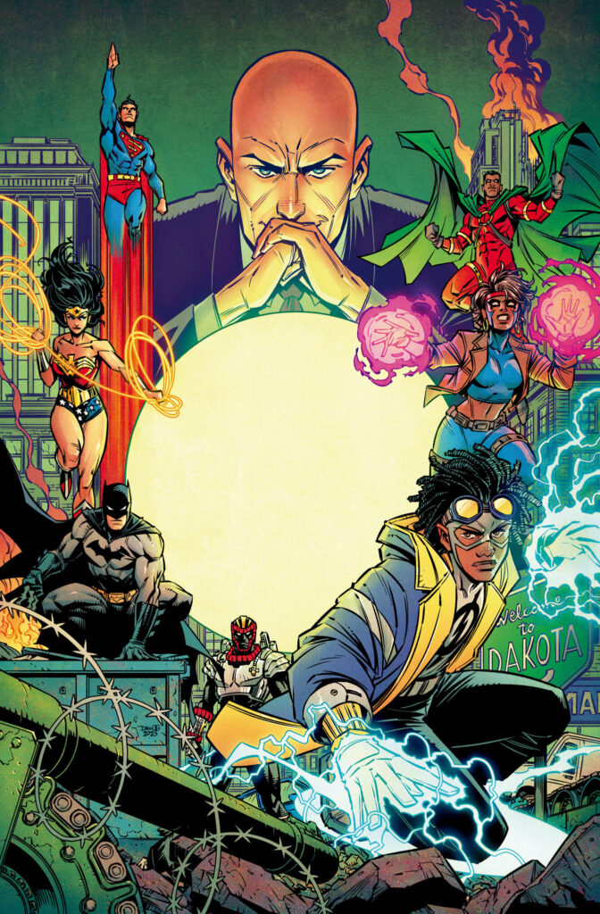 Spinning out of the pages of New History of the DC Universe, uncover an untold moment in DC history, where a murder leads to an all-out war between the heroes of Dakota City and the U.S. government led by Lex Luthor. As their home becomes a battlefield, what must Static, Rocket, and the others sacrifice to keep their loved ones safe? But as heroes fall in the past, the stage is set for their return in the present…