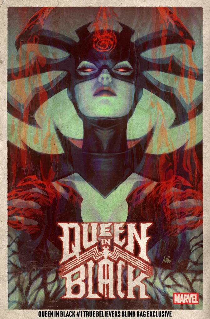 QUEEN IN BLACK #1 TRUE BELIEVERS BLIND BAGS will only contain exclusive variant covers not available for regular ordering. The main cover and regular open-to-order variant covers cannot be found in True Believers Blind Bags, making it the most exciting and rewarding True Believers Blind Bag experience yet! See below for a list of the exclusive blind bag variant covers. In addition to those listed, fans can once again look forward to super rare exclusive covers by surprise contributors, including hand-drawn, one-of-a-kind sketch covers.