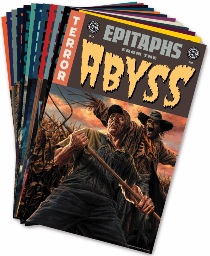 Oni Press, the multiple Eisner- and Harvey Award–winning publisher of groundbreaking comics and graphic novels since 1997, and William M. Gaines Agent, Inc., are celebrating EC Comics’ history-making, headline-grabbing return EPITAPHS FROM THE ABYSSLIBRARY EDITION: BOOK ONE – the first in a new line of enhanced hardcovers collecting the entirety of the new EC library at Oni Press and debuting in two eye-popping editions, Oversized, unapologetic, and uncontrollably outrageous, both the standard EPITAPHS FROM THE ABYSS LIBRARY EDITION and the sublime EPITAPHS FROM THE ABYSS LIBRARY EDITION – LIMITED SLIPCASE & PORTFOLIO EDITION (limited to 1,000 units) will be on sale on July 14th, 2026—just as the new and nightmarish EC Comics horror host the Grave-Digger foretold.