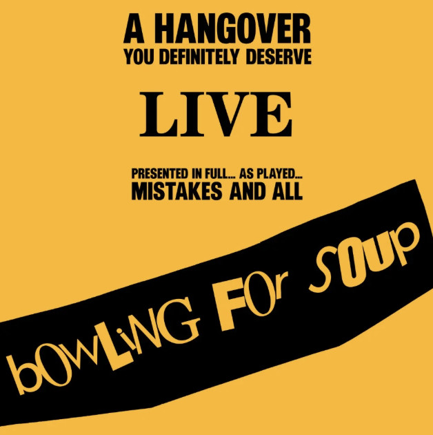 | New York, NY (October 24, 2025) – After announcing earlier this year, pop-punk legends Bowling For Soup have released their brand new live album, A Hangover You Definitely Deserve (Live) in celebration of the triumphant 20th anniversary of their breakthrough album, A Hangover You Don’t Deserve. Recorded during their huge sold out February 2025 UK tour in Manchester, A Hangover You Definitely Deserve (Live) brings the anniversary tour to Bowling For Soup fans all across the world in its full glory. The live album includes all the between song banter that is the cornerstone of any live Bowling For Soup experience. |