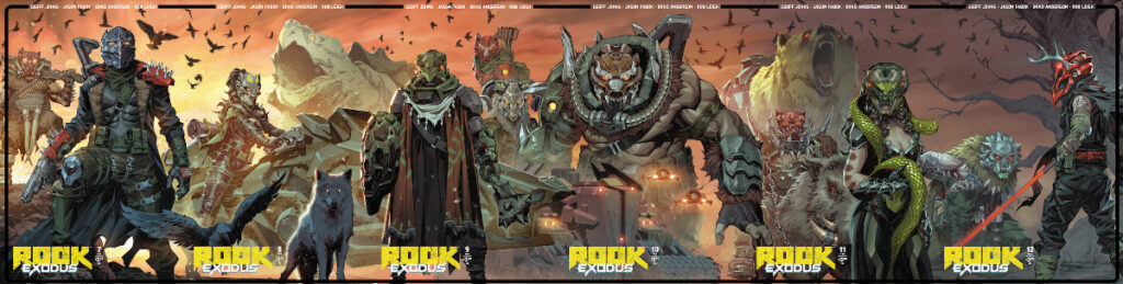 This volume of Rook: Exodus will also feature a connected cover running across all six issues by breakout Malaysian artist Kael Ngu. The six-part cover connects to show off the world of Exodus and its Wardens from the first and second arcs of the series.