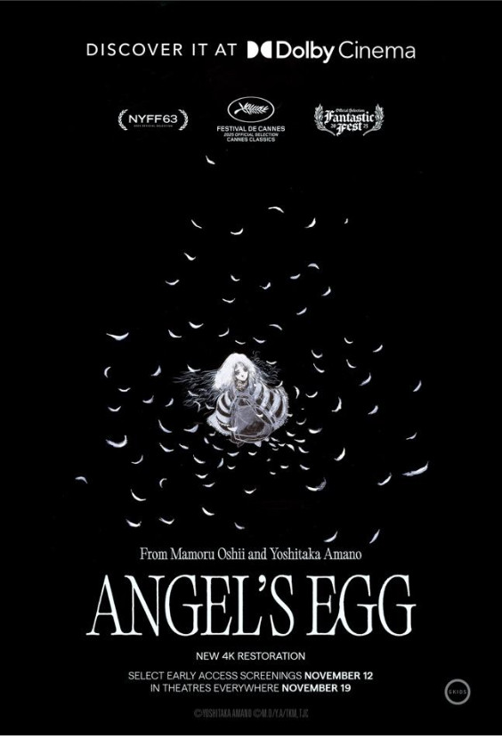 NEW YORK, NY (October 15, 2025) – Tickets are on sale now for Mamoru Oshii’s rarely screened early masterpiece ANGEL’S EGG, which comes to theaters in an all-new 4K restoration supervised by director Oshii. GKIDS, the Academy Award®-winning producer and distributor of acclaimed and artist-driven animation from around the world, announced that the highly anticipated feature will hold advance screenings at Dolby Cinema® locations on November 12, ahead of the film’s first-ever nationwide release on November 19 & 20. Tickets are on sale now for early access screenings at select Dolby Cinema at AMC Theatres locations across the country, with additional theater locations being added throughout the month. In tandem, a brand new Dolby Cinema exclusive poster is being released to celebrate the film’s restoration.