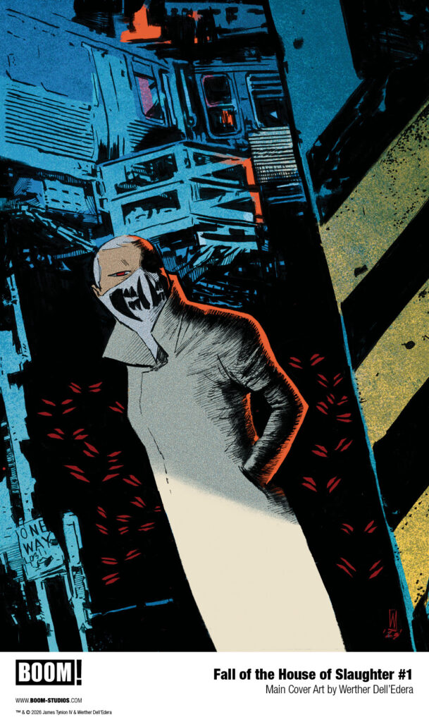 FALL OF THE HOUSE OF SLAUGHTER is the newest release from BOOM! Studios’ eponymous imprint, home to critically acclaimed original series, including BRZRKR by Keanu Reeves, Matt Kindt, and Ron Garney; Something is Killing the Children by James Tynion IV and Werther Dell’Edera; bestselling horror anthology Hello Darkness; Minor Arcana by Jeff Lemire; Marian Heretic by Tini Howard and Joe Jaro; The Graveyard Club by R.L. Stine and Carola Borelli; A Vicious Circle by Mattson Tomlin and Lee Bermejo; The War by Garth Ennis and Becky Cloonan; The Last Day of H.P. Lovecraft by Romuald Giulivo and Jakub Rebelka; Briar: Night’s Terror by Christopher Cantwell and Alex Lins; Alice Forever After by Dan Panosian and Giorgio Spalleta; and The Center Holds by Larry Hama and Mark Bright. The imprint also publishes popular licensed properties, including Dune: House Corrino from Brian Herbert, Kevin J. Anderson, and Simone Ragazzoni; Power Rangers Prime by Melissa Flores and Michael YG; and The Expanse: A Little Death by Andy Diggle, Wes Chatham, and Francesco Pisa.