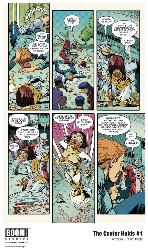 LOS ANGELES, CA (November 20, 2025) – Legendary writer Larry Hama and the late M.D. “Doc” Bright’s final work is presented for the first time at BOOM! Studios in THE CENTER HOLDS! A superhero series that questions the very nature of what it means to be a hero in a giant-sized first issue!