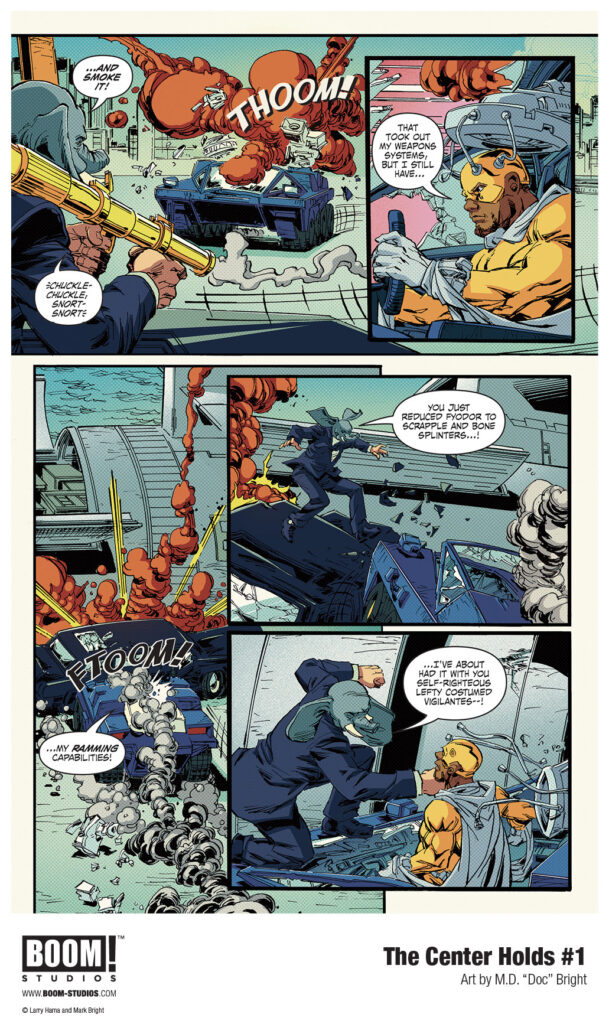 BOOM! Studios and Larry Hama are proud to be donating 2% of net sales from THE CENTER HOLDS to The Hero Initiative in honor of M.D. “Doc” Bright’s memory and legacy.