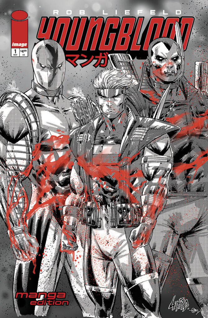 “I love the style and design of Manga comics and I created an approach to my work that attempts to mimic those artistic influences with the Youngblood manga editions,” said Liefeld. “These have proved extremely popular with consumer! I’ll be doing a manga edition alongside each issue!”
